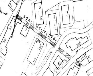 Infatti risale al dicembre 1900 la proposta - stesa dal Commissario Straordinario - alla Giunta comunale di dare nome “scalinata Belvedere” in alternativa ad altra proposta già fatta in Giunta di “scalinata Garibaldi”. La foto di quegli anni, la ritrae risalire diritta e solitaria il versante est del colle, tra orti e qualche casa sparsa.