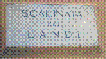 Dal 1951 al 1956, tutte le costruzioni erette nella strada superiore dei Landi (dal civ.2 all’ 8 e dal 3 al 17) vennero attribuite alla scalinata, finché non furono tutti trasferiti alla su detta strada (in particolare però, i civv. 7 e 9 –scrive la toponomastica - provenivano da via C.Cattaneo e furono assegnati alla scalinata in epoca non precisata: nell’ apr.1954 divennero il 30C e 30D di via GB Monti; nel 54-nov.55 - eretti altri caseggiati - i nuovi numeri 7 e 9 furono riassegnati alla scalinata)