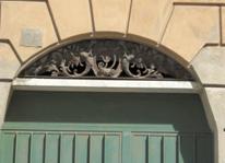 ===civ. 105 (vedi sopra la foto) ha un portone simile a quello di via Bombrini: piccolo, con ai lati sottile lastra di marmo che in alto diventa un poco più spessa e - come appoggiata a piccolo stipite - termina ad arco alla sommità, avente al centro un piccolo rilievo.