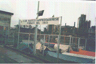 In questo pezzo lungo cento metri circa, sono ospitate -in una serie di casotti pianoterra- alcune società, come il Club Nautico sampierdarenese (vedi in via San Pier d’Arena), il deposito privato di alcuni pescatori, un bar e la sede della Soc.Sportiva UGES Esperia sezioni canottaggio e pesca sportiva (stranamente, sulla carta intestata risultano localizzate al civ. 16 e 26 di via Sampierdarena e in via Mamiani 15r).